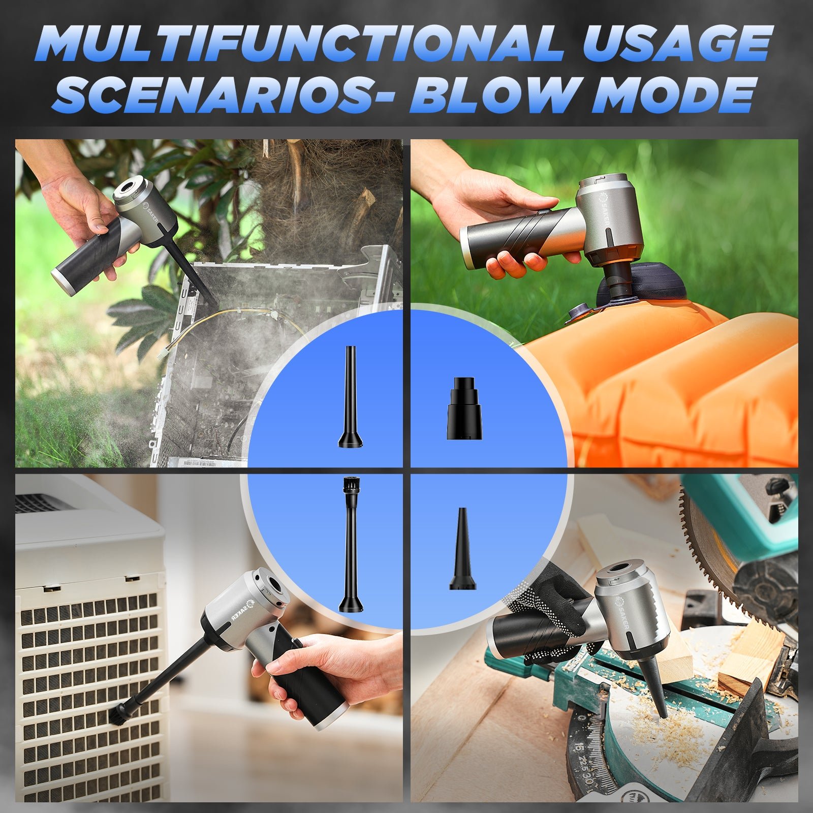 • 3-in-1 multifunctional mini car vacuum cleaner: Portable car vacuum is equipped with a variety of accessories to meet various usage scenarios such as blowing, sucking and pumping. It can not only clean computer keyboards, host computers, windows and other difficult-to-clean gaps, but also sofas, seats, cars, woodworking workshops, offices, etc, to meet your various cleaning needs.